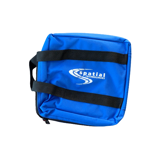 Durable blue canvas bag with a heavy-duty zipper, designed to securely store and protect a single prism during transport and field use.