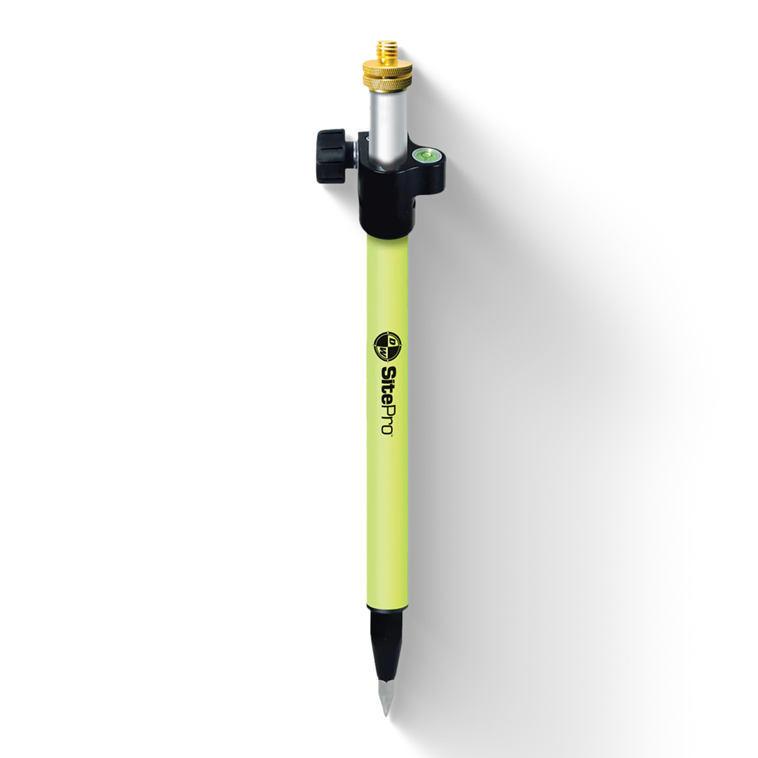 The SitePro mini prism pole extends to 2.3ft (0.7m) and features easy twist locking mechanism with built-in 20min bubble vial. Constructed of high quality aluminum with outer pole in flo-yellow for better visibility. Dual graduations are imprinted on inner pole.