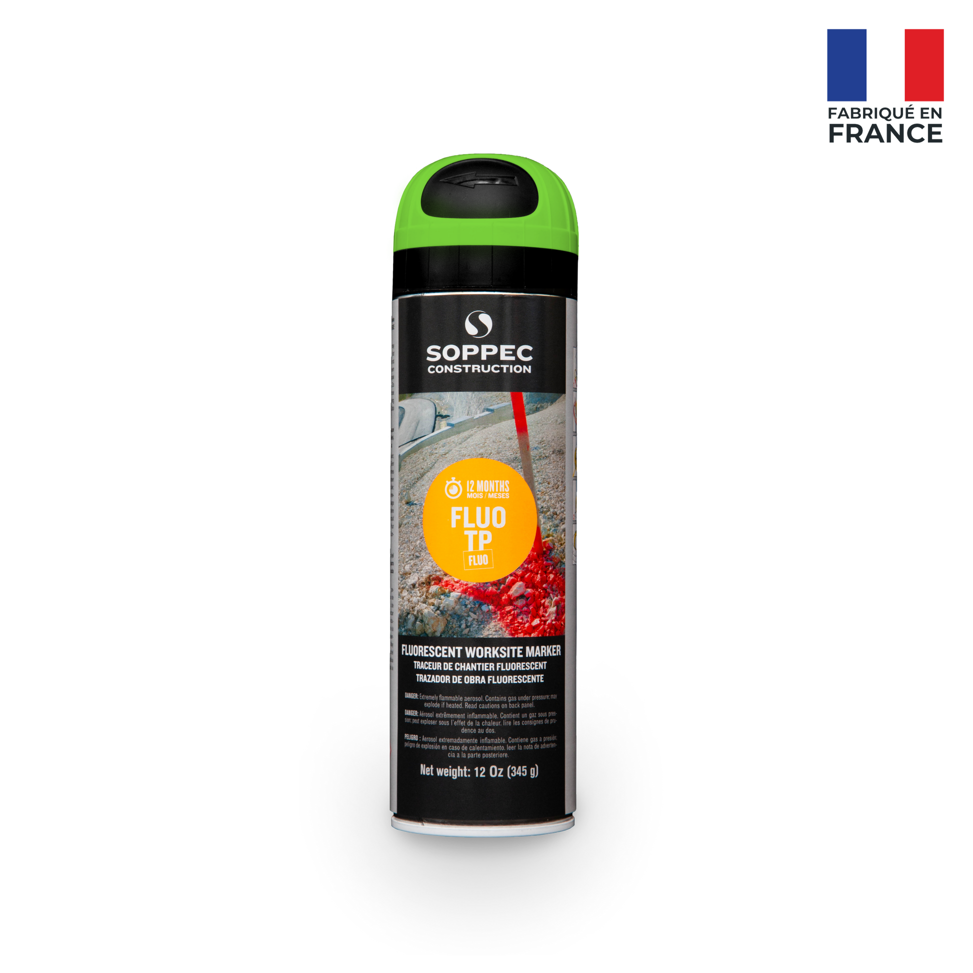 FLUO TP is designed to meet the very highest demands for marking visibility and longevity. It is particularly appreciated by land-surveyors for setting-out and identification, but is also used in a wide range of other domains such as roadworks, earthworks, pipework and the general construction field. FLUO TP is the most fluorescent marking spray on the market and offers the highest visibility thanks to its new formula with an even higher density of fluorescent pigments. Easy and safe to use, Fluo TP is fitted with the patented Soppec “TP” safety cap.