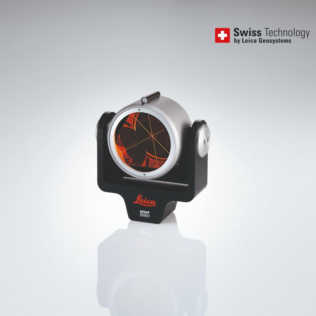The Leica GPH1P precisely machined reflector, for high accuracy requirements. The prism diopter is slightly tilted to prevent any EDM reflection from the front surface thereby increasing measurement accuracy.