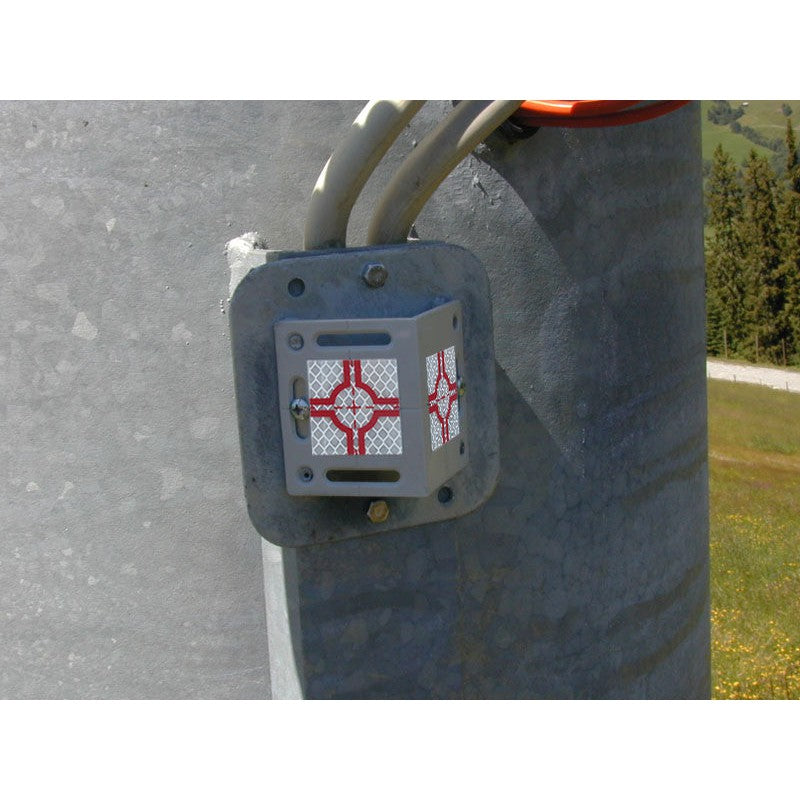 - Crosshairs are imprinted on the backing plate under the exact centre of the reflective target to ensure the survey point is durably marked. If the reflective target is damaged at any point, it can easily be replaced and the original survey point can be restored quickly, easily and cheaply.