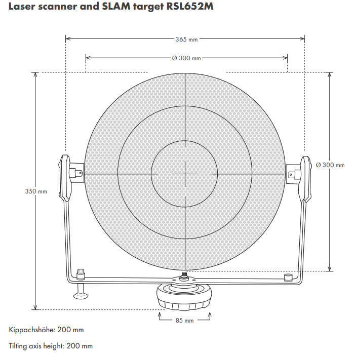 - RSL652M – with Ø 300 mm target, tilting axis height 200 mm