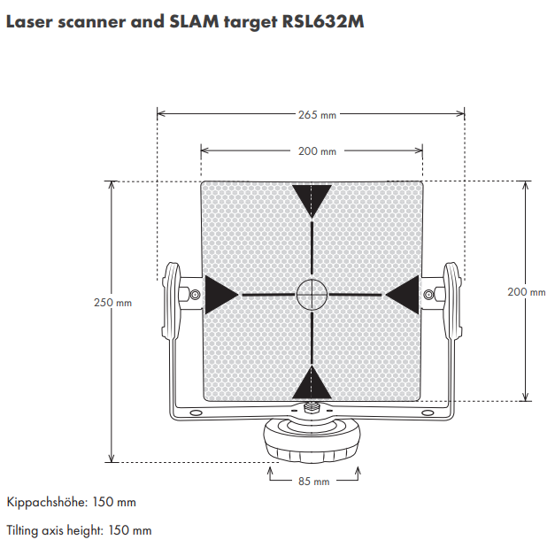 - RSL632M – with 200 x 200 mm target, tilting axis height 150 mm