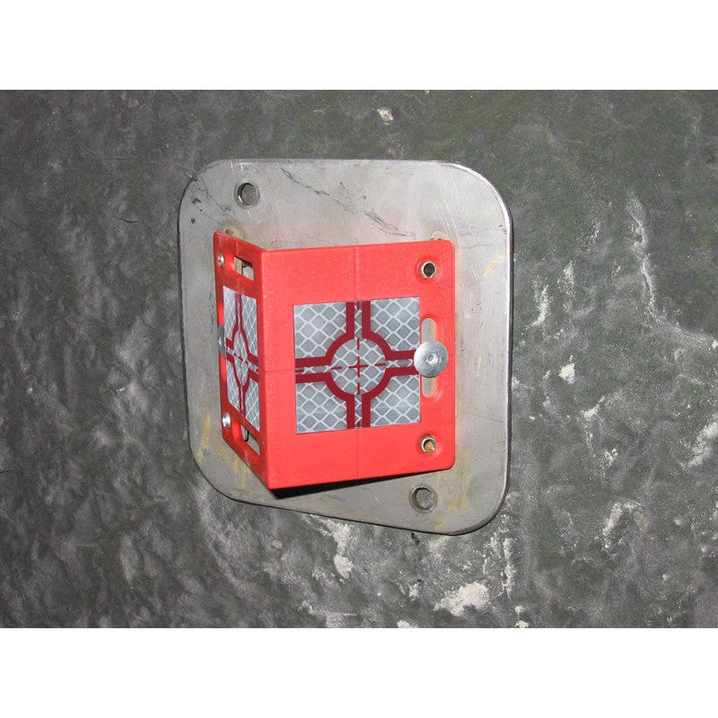 - Crosshairs are imprinted on the backing plate under the exact centre of the reflective target to ensure the survey point is durably marked. If the reflective target is damaged at any point, it can easily be replaced and the original survey point can be re-established quickly, easily and inexpensively.